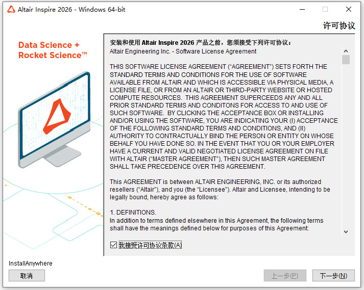 4、从AltairInspire2026_win64.zip文件中提取出AltairInspire2026_win64.exe文件,双击安装运行;