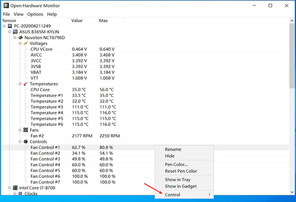 3、选择其中一个组件(Fan Controls #1-7)单击鼠标右键,