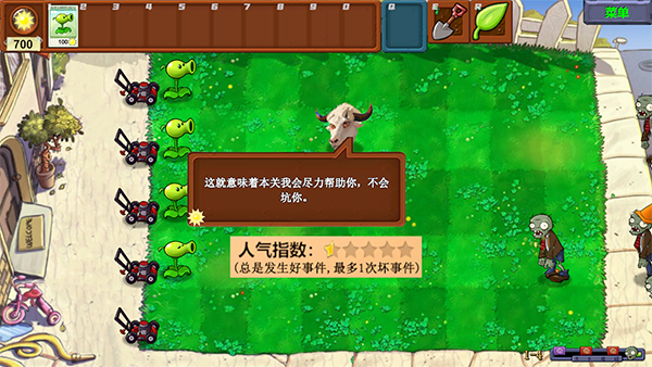 4、保留原版植物与僵尸的呆萌形象,界面新增山羊头指引标识。