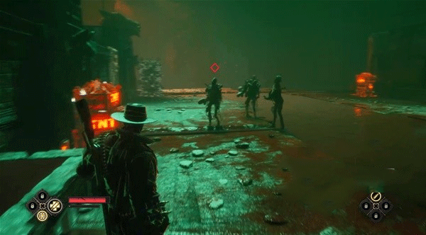 作为一款第三人称的动作冒险游戏,《暗邪西部》并没有追求当下开放世界的噱头;而是延续传统的线性故事,玩家跟随故事剧情,逐渐解锁玩法内容。游戏为玩家提供三件远程枪械,以及一件近战武器。每件装备都有独立的技能树,玩家可以根据喜好加点。战斗的主要方式就是远程消耗,和夸张的近战技能结合。