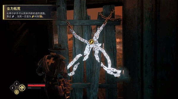 5、一路往前走,进入车厢后遇到挡路的铁链木板,挥拳可击碎。有些时候击碎这种铁链木板可以发现隐藏的支路;