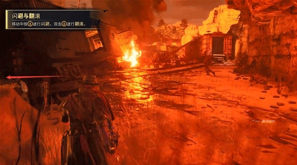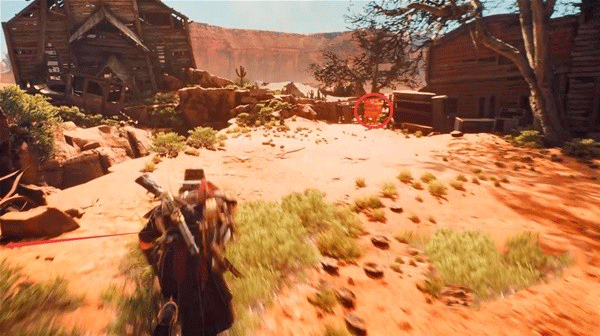 1、开枪干掉敌人,搜刮面前的房子(有宝箱)后,进右边的房子上楼。注意敌人身上出现光圈时就是暴露出了弱点,迅速射击光圈可造成大量伤害,从楼上跳下来后,右拐绕到房子后面有宝箱;