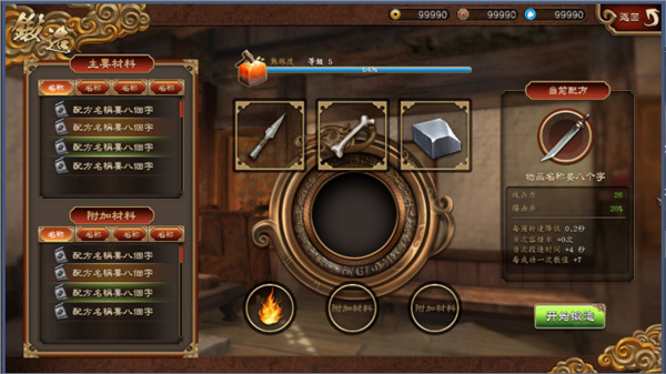 玩家前往杭州可开启锻造系统,可放入指定的配方材料后,开始进行游戏。
