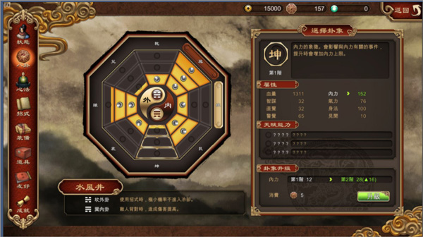 我个人觉得这个游戏特别吸引人的一点是它的自由度很高,玩家可以通过选择不同的武学心法和八卦系统来决定自己的成长路线。此外,游戏中的“出示”系统也让我眼前一亮,通过赠送物品给NPC,可以改变剧情走向甚至逆转战局,这种设计让 gameplay 更加多样化。