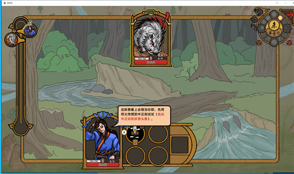 7、怪物受到攻击后即开始下一回合,妖怪攻击玩家,玩家将自己头像往下拖拽即可开始下一回合。