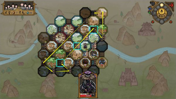 地图的左上角会显示一个表示损失人口的数字,初始将会提供十名可容忍的损失数量,当玩家沉迷于自身的奇遇探索又或者是没有合理分配自身的行动路线导致百姓被妖魔涂炭,减少至零时游戏即宣告结束。