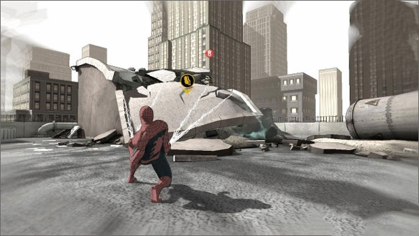 一共有两种方式:第一是飞到可以落脚的地方,第二就是空中接力,原词是web swing。不要以为这样蜘蛛侠就不会摔死了,当你不小心飞到四周都是悬崖峭壁的地方,就只能来回摆动找机会跳到正常的地方。