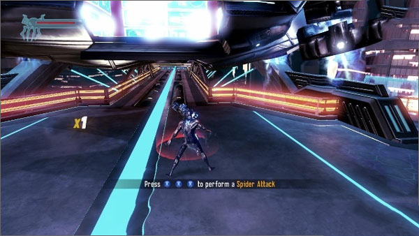 这里要控制未来的蜘蛛侠,没听错的话应该是2099年,这里是攻击训练,根据按键提示干掉敌人就可以了。