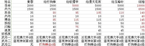 培养难度:难。打狗棒可以做“闯王宝藏的秘密”获得,或者做“神雕侠的三件礼物”然后贪下打狗棒;软猬甲黄蓉加入时自带;漫天花雨华山派的可以在华山剑宗学到;少林的可以在南少林得到,其他门派得不到;玉蜂针古墓的可以在和小龙女切磋时得到,其他门派可以找铁匠打造(几率比较低)。