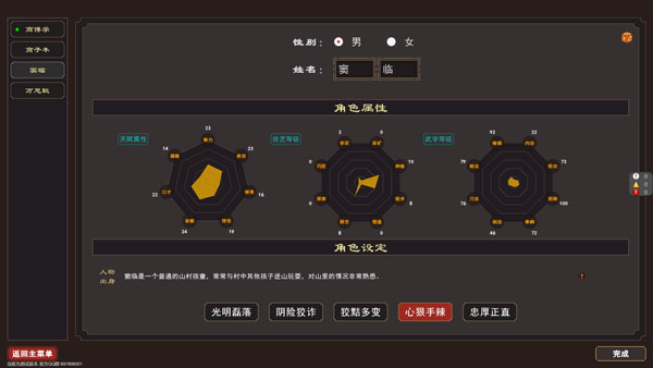 3、选择你的人物性别和名字,以及角色设定;