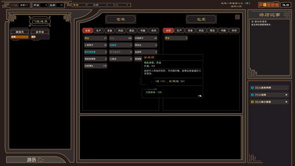 我个人觉得这款游戏非常适合喜欢自由探索和策略规划的玩家。虽然初期可能会遇到资源不足的问题,但通过合理的经营和任务完成,慢慢积累资金和实力会很有成就感。游戏中的随机事件和多样化的玩法让江湖世界更加丰富有趣。