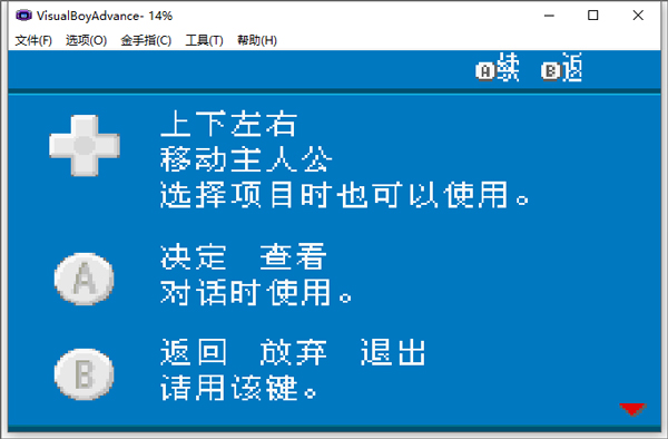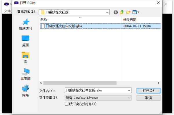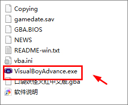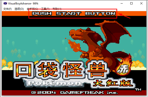 2、双击文件“VisualBoyAdvance.exe”打开模拟器,载入文件“口袋妖怪火红中文版.gba”开始游戏;