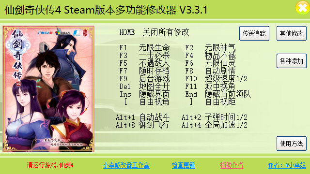Alt+8 御剑飞行 Alt+4 全局加速1/2