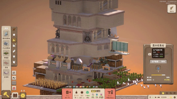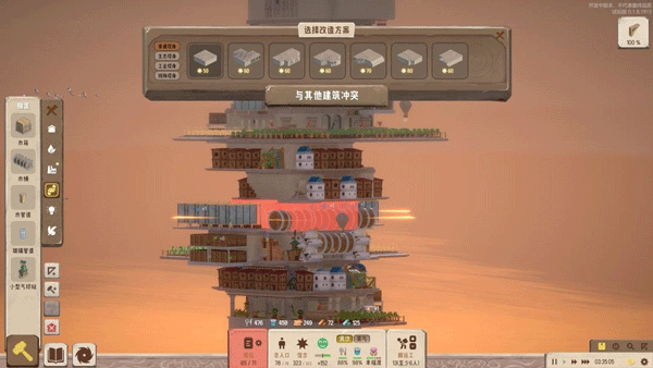 不过,考虑到游戏中塔身在建造后只能更改不能拆解,且建筑拆解时材料会完全返还,个人比较建议先稳步经营一段时间,再从下到上逐层进行优化,这样既能避免因劳动力不足导致的生产停摆,又能为后续的改建思路继续积累资源,反正总比大刀阔斧的将建筑直接清零要好上一些。