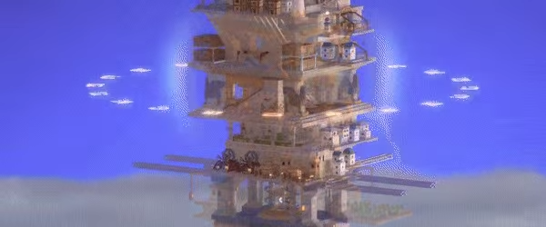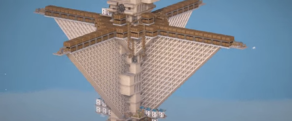 利用斜撑加固塔身,拓展横向空间。近乎悬空的高空花园,或是网状结构般的天空平台。挑战重力限制,撑起天空之城的无限创意。