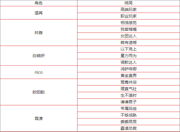 林雅和温苒、霄潇和欧阳韵、白晓妍和nico这三对是有共同的完美结局的