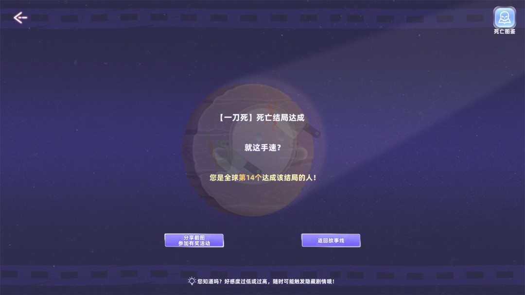 毕竟,收集死法,也算是游戏的一种机制……天知道,死法累积数量,有没有影响结局呢?