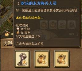 上面的宝物都还只是+5的关税 有+8的关税物品 下图的【眼睛老头】貌似只有研究院才出 反正我在其他地方没刷到过 有朋友刷到 望告诉我 有个设想:我在一个岛上装备3个这样的人员 比如下面的【魁梧XX】 我就卖枣子和软糖 你的库存先需要【软糖】+【枣子】>=18,交易栏就设定卖【枣子】+【软糖】一个不留想必大家知道我的用意了这样商船来交易你卖了枣子和软糖结果又收到枣子和软糖等于没有卖但是你确实是收到了钱啊…… 同志们要是刷到【勤勉的东方海关人员】那么小弟恭喜啊刷出3个放一起你不想做富翁都不行我至今刷出一个感谢研究院那个【眼镜老头】。