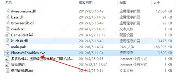 1、解压游戏后双击“PlantsVsZombies.exe”运行游戏。