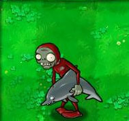 海豚僵尸骑着海豚来突破池塘防线的薄弱之处。