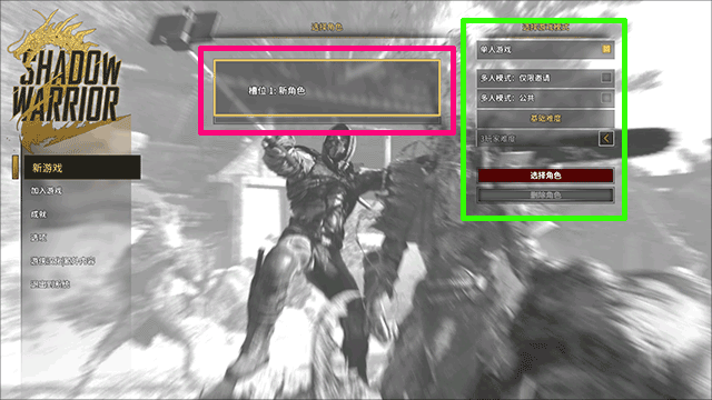 3、返回到主材单界面后,玩家就可以选择并点击“新游戏”的按钮选项,在弹出的右侧信息栏中选择好单人或多人后,双击红色方框内的区域建立新角色;