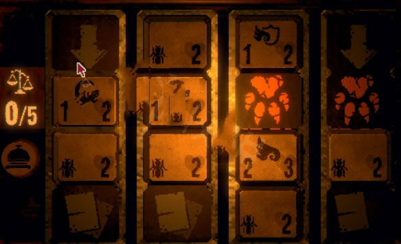 打开保险柜,密码是273,第一次死亡后,臭虫会把放在保险柜里屎吃完,可以拿到钥匙,钥匙能解锁对面的柜子,了解卡牌词条之后很好解开这四个谜题,最简单的方法就是获得第四个格子里面的图腾像,下局游戏中图腾师会加入地图之上,图腾效果可以自由组合,体现和地图上的图腾精英战一样,一般最好的是松鼠-3血祭品、松鼠-囤货,得到基本可以通关。