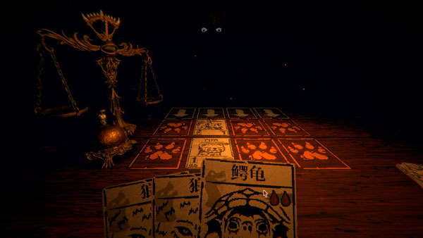 卡牌让对面打破笼子就行。破了之后拿房间里的狼雕像插到刀的地方,用第一列的反伤把第二列的分叉打死,后面就是小解密了。