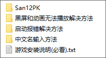 1、游戏本体在San12PK目录内,请先运行“注册表工具”恢复注册表,然后运行San12PK.exe启动游戏。