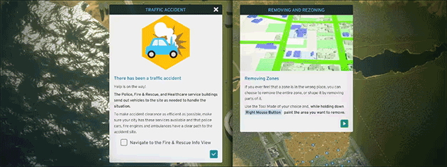 打开新的服务或面板时,会触发教程。新的服务会随城市发展而逐步解锁。
