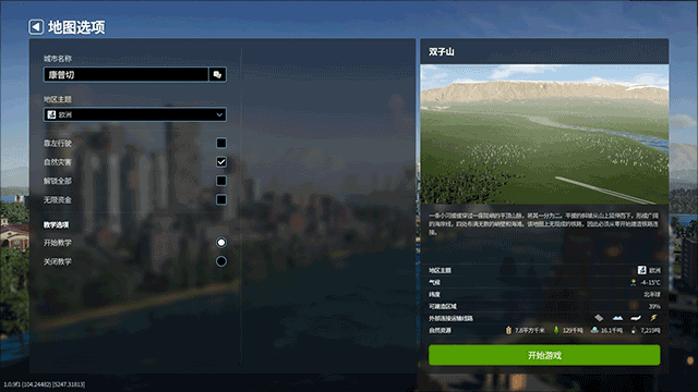 5、然后在这里对你即将开建的地图进行细节化调整,完成后点击开始游戏即可开玩;