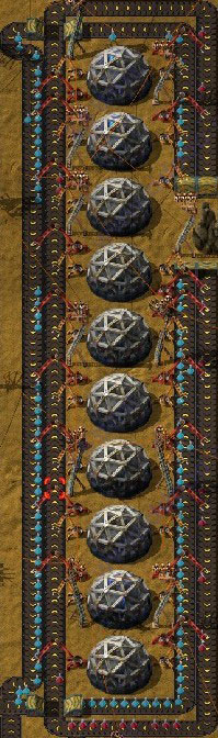 蒸汽发动机摆法,只摆一侧相连,留出火炉整齐的一边在每个火炉都摆上手臂,开采的煤矿用传送带自动添煤,只要煤矿不枯竭就不用去搭理他了。