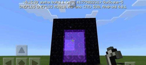之后我们只需要在游戏中,拿着准备好的打火石,对着长方形的内壁也就是中间区域点一下,这样就会出现下图的样式,这样一个传送门就做好了。