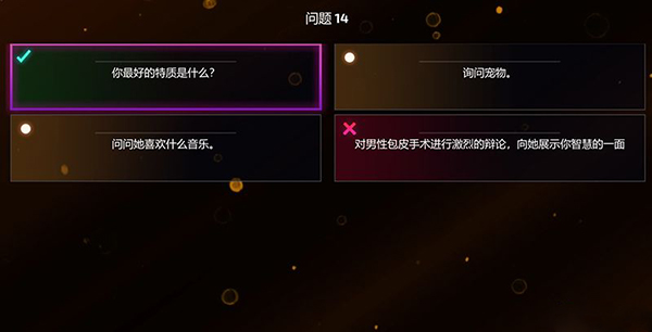 每个选项都会产生一个好感度,从0%到100%。