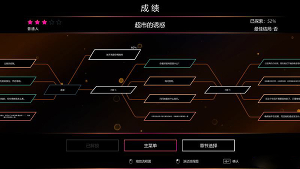 每个问题都有多个选项,全部选项都尝试一遍就能解锁章节探索度。
