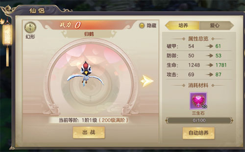结成仙侣后,玩家会拥有一只爱情守护,可召唤出战,需要消耗三生石来培养升级,还可通过活动解锁更多外形。