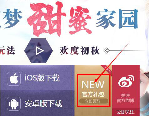 2、在页面上找到并点击如下图所示的“官方礼包”按钮
