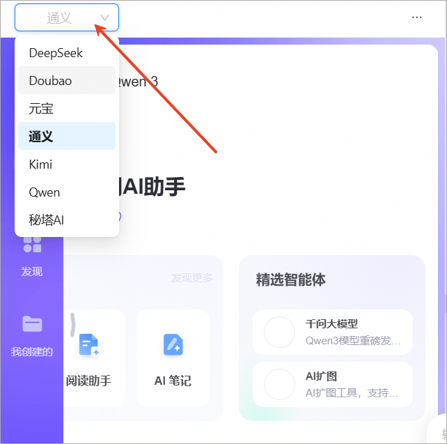 4、通过页面左上角AI工具名称进行切换不同的工具进行更改批量问AI