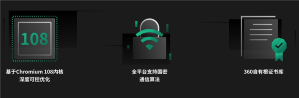 360安全浏览器基于国内商用密码算法模块和国内安全协议模块,全面支持国内计算平台上的国家保密通信,更有效地提高了网络信息通信的安全性。