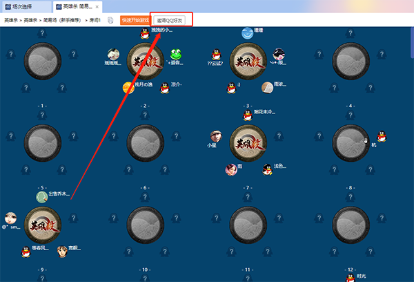 3、除此之外玩家也可通过需要一起玩的游戏进行添加,下面以“英雄杀”举例,我们点击“开始游戏”后进入游戏组队环节,点击“邀请QQ好友”