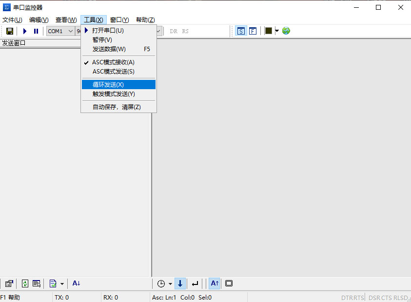 4、循环发送“发报窗口”当前光标行的数据帧。