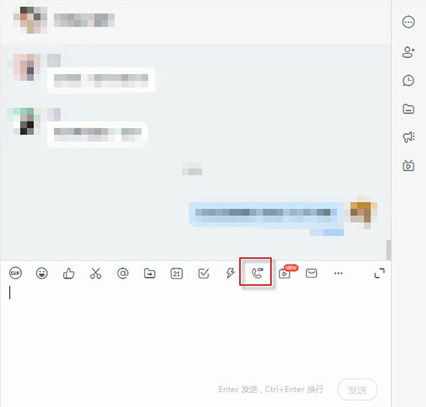 打开钉钉电脑版会议的群,点击菜单栏的电话图标;
