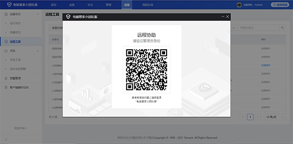 选择打开远程协助后,在浏览器中打开新的远程协助窗口,进行扫码验证管理员身份;