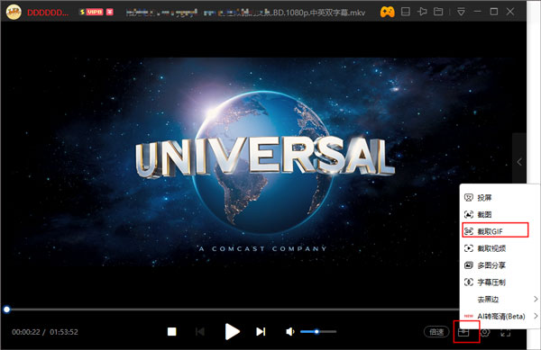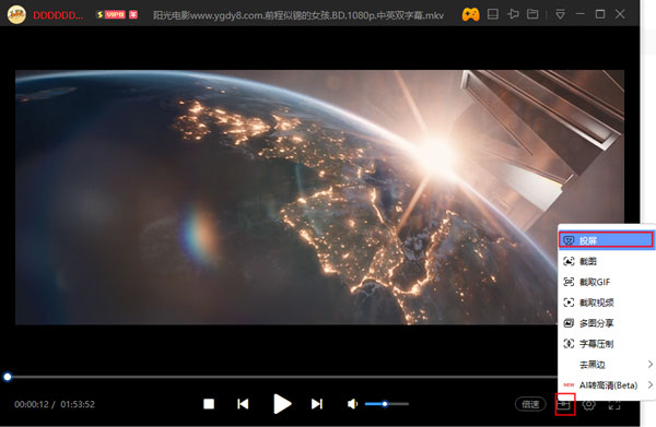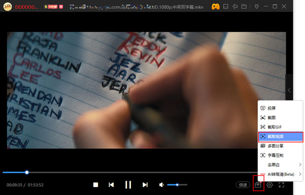(1)点击播放器右下角“工具箱”图标,选择“截取视频”