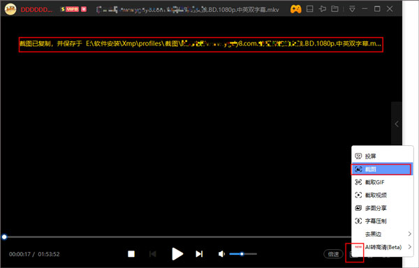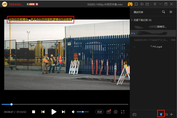 ③ 播放该视频文件(或者双击打开字幕文件),播放器就会自动加载该字幕。