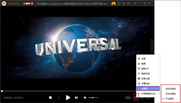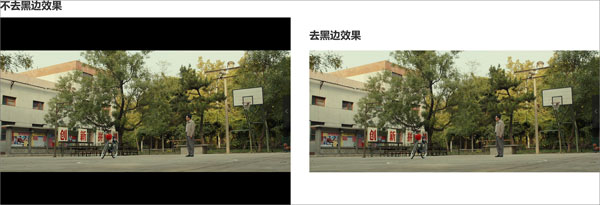 ② 下图中右边那张图是去除黑边效果,左图是没有去除黑边的播放效果