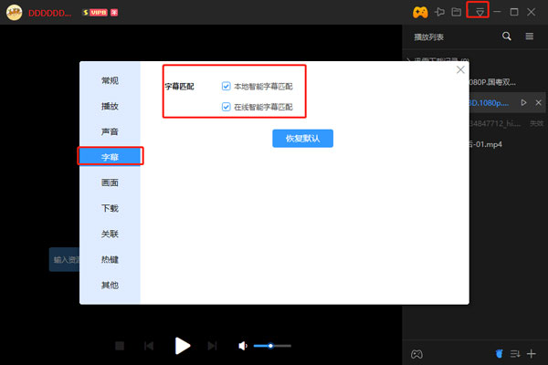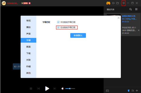条件3:开启了“在线智能字幕匹配”功能(默认开启,设置-字幕-字幕匹配)