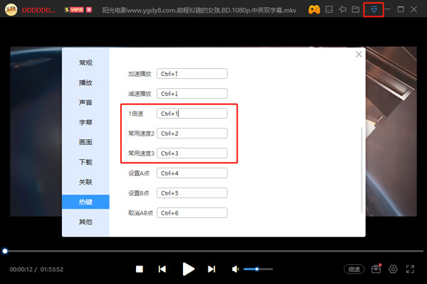 (2)您可以在不同的快捷键下设置其对应的播放倍速,播放视频时,使用该快捷键可以将对应的播放速度快速应用在视频播放中。