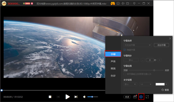 播放视频文件并添加字幕之后,想要调节字幕进度、字幕颜色、字体、大小及显示位置,可点击客户端页面下方“设置”按钮---字幕,根据需求设置参数即可