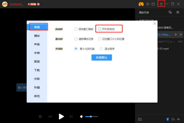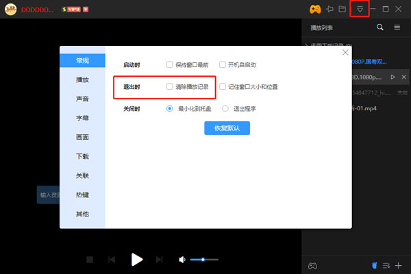 (1)展开右上角菜单,选择“设置中心”---“常规”,将“退出时”“清除播放记录”勾选,退出后将不会保留播放记录