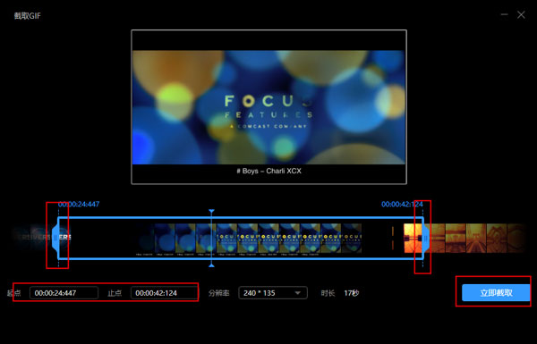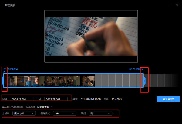 ② 也可以通过使用鼠标滑动预览图的方式,拖拽画面进度,获取不同的起止画面;